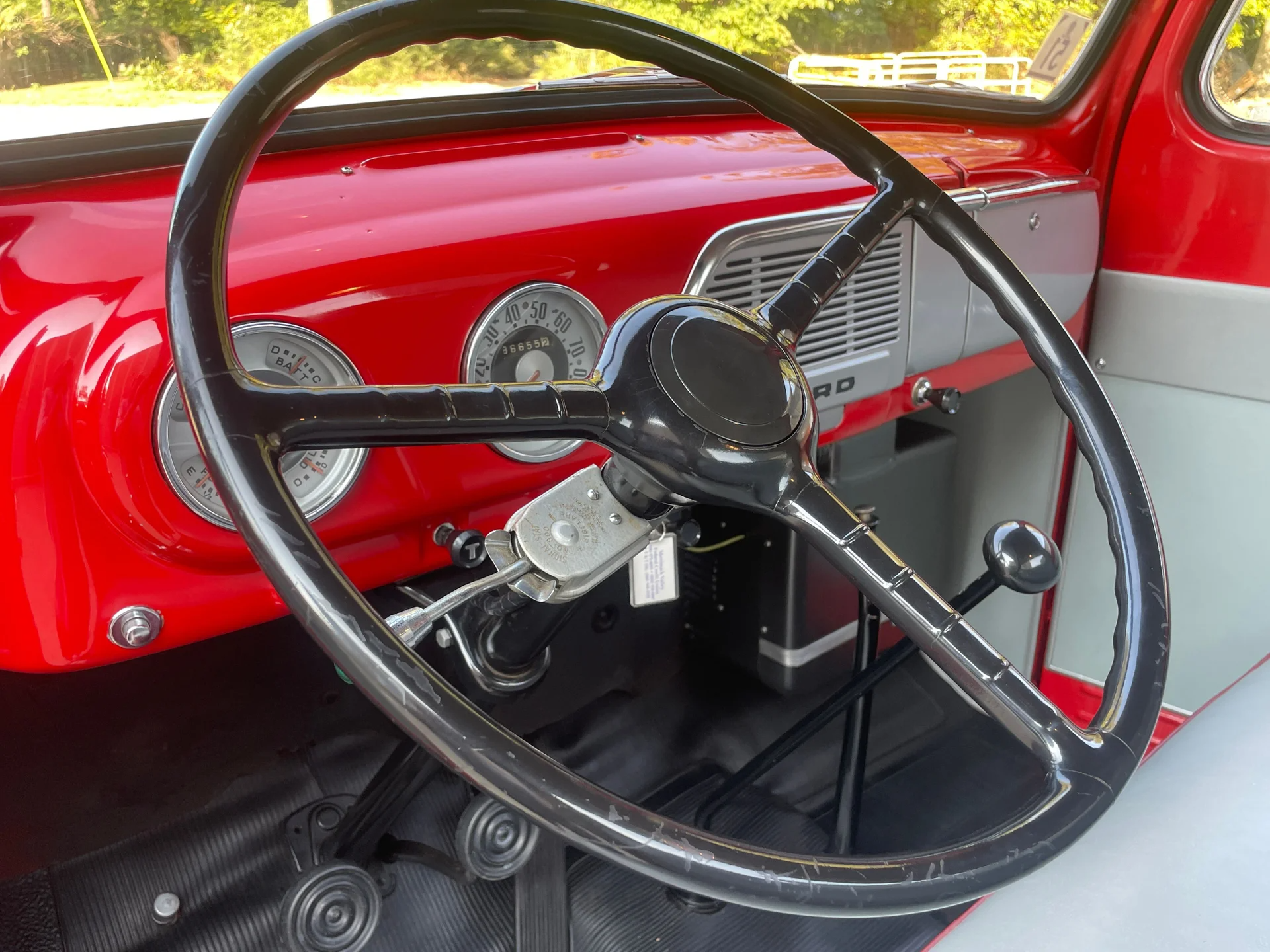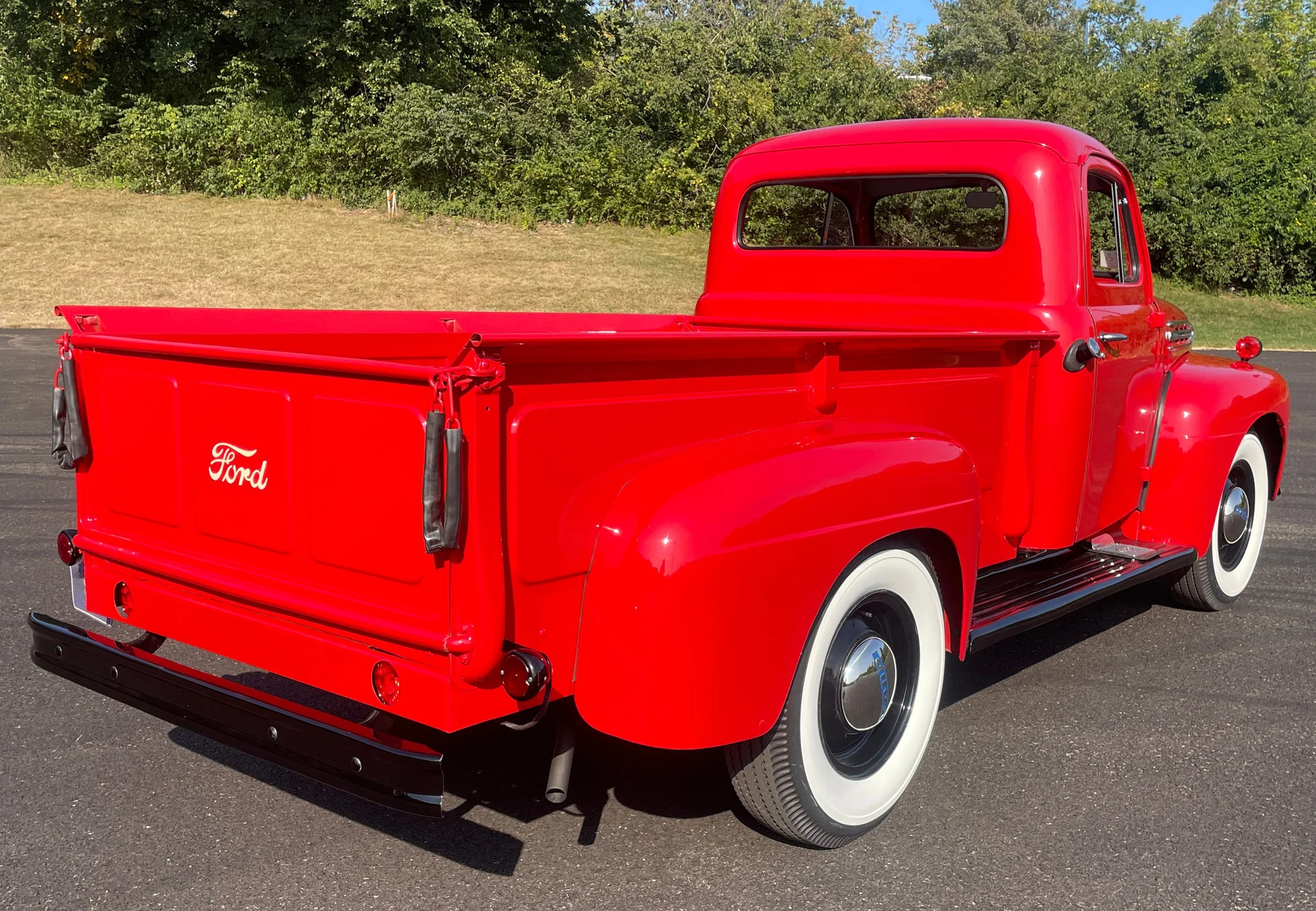 1951 Ford F-3 Pick-up Truck, beautifully restored, totally rust free, stunning Red paint, excellent Red and Gray interior, perfect wood bed, smooth 239 cu in 110 HP Flathead V8 engine, 3-speed transmission, turn signals, wide white wall tires, fully serviced and ready for show or go!
