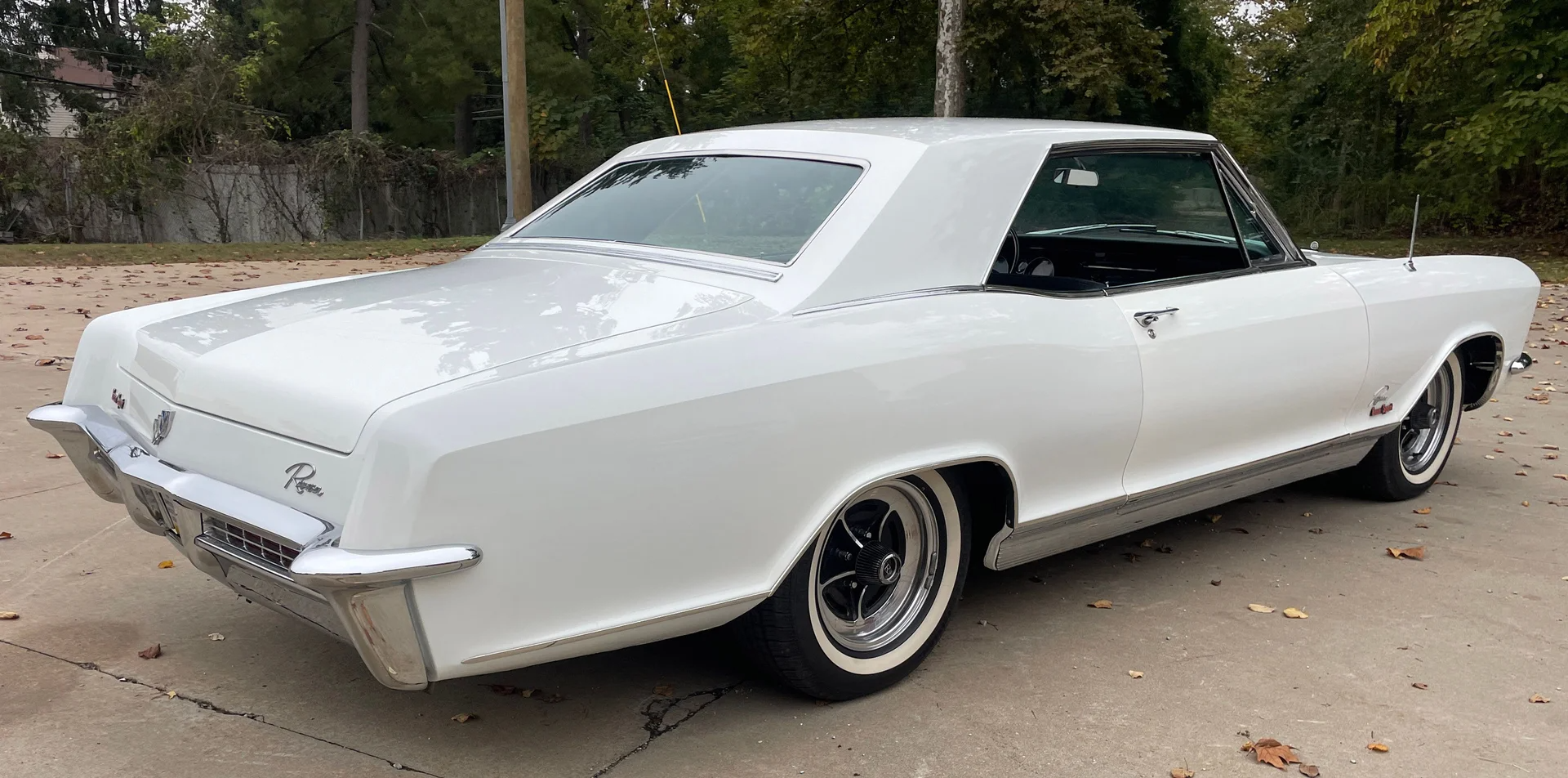 1965 Buick Riviera Gran Sport, totally 100% rust free, beautiful Arctic White paint, excellent original Black interior, gorgeous chrome and trim, matching number 425 cu in 340 HP V8 engine w/ dual quad carbs, TH400 automatic transmission, factory A/C, power steering, power brakes, tilt steering wheel, Buick Road Wheels, white wall radial tires, fully serviced, runs and drives great!