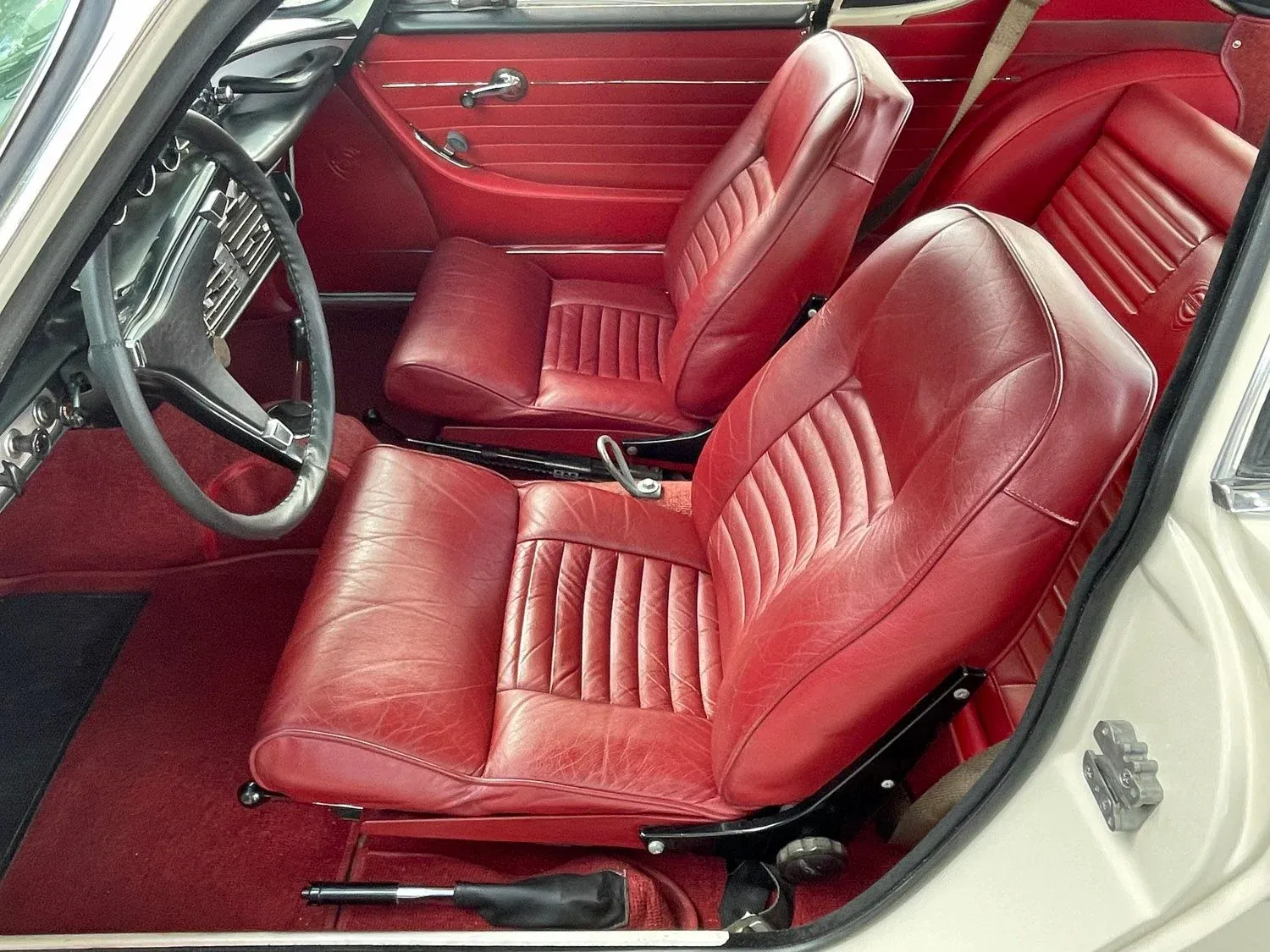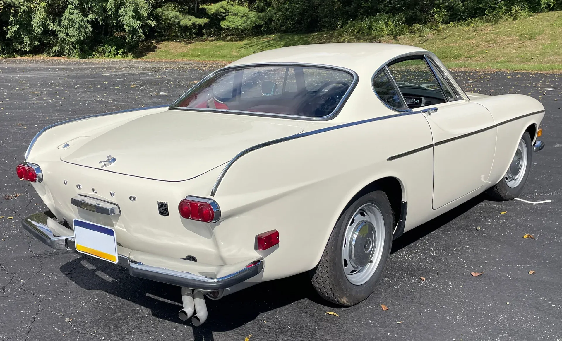 1968 Volvo P1800 S Coupe, beautifully restored, gorgeous Pearl White paint, gleaming chrome and trim, excellent Red leather, smooth and peppy 1.8 Liter 115 HP 4-cylinder engine, 4-speed with working overdrive transmission, factory A/C, AM/FM radio, absolutely fabulous!